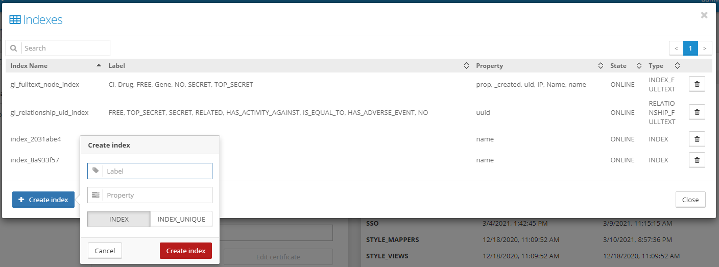 Click on the "Configure schema indexes" button to show the modal window (pictured below).