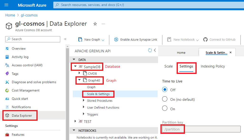 Partition Key | /region | Partition key used in this particular Graph. Can be found in Azure in Cosmos Data Explorer under the “Scale & Settings” Settings tab. See the next chapter for more details. Needs to start with “/”. |