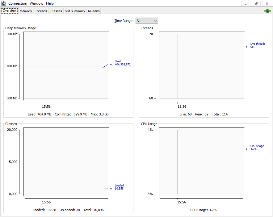This will start a JMX connection that will show a lot of usefull informations about the running Graphlytic instance.