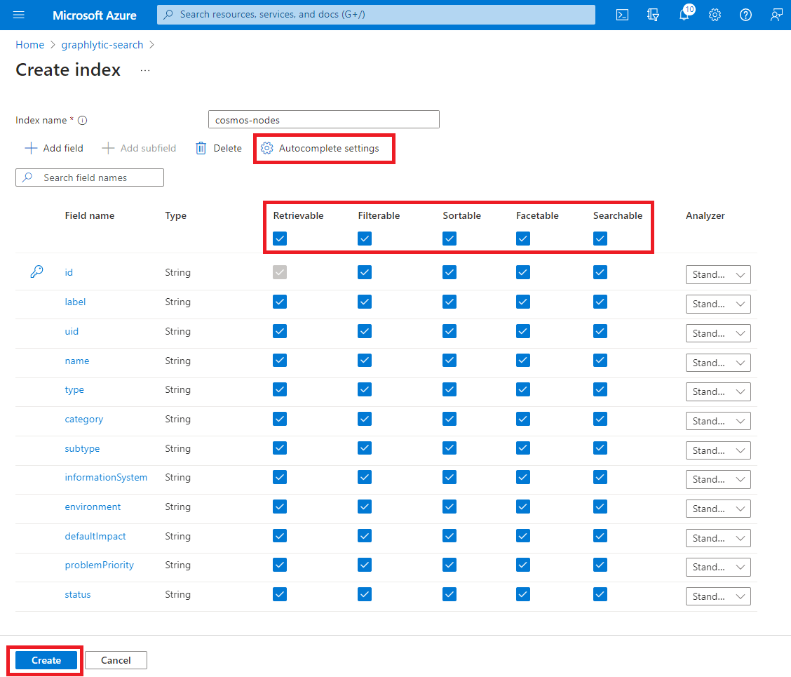 Uses Azure Cognitive Search as an external search engine. Data has to be periodically imported into the Azure Cognitive Search service to ensure consistency between your graph DB and search indexes (Graphlytic is not doing this out of the box, the connection and data importing have to be done by the user). This search connector is best with Cosmos DB because Azure has multiple tools how to easily connect Cosmos DB and Azure Cognitive Search.