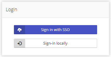 When the SAML2 integration is enabled the Login page includes an SSO login option (the title of the button is configurable).