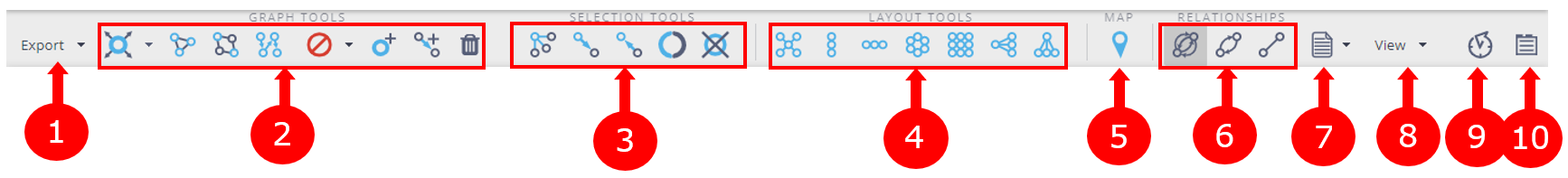 Next to the "Visualization" menu are several buttons for graph operations that adds or removes elements from visualization: