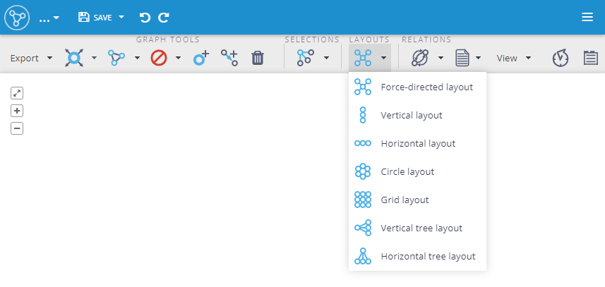 Buttons for running different types of layout algorithms can be found in the Layout Tools menu: