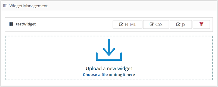 Uploaded widgets needs to be added into projects where you want to use them. To add a widget to a project please refer to Widgets .